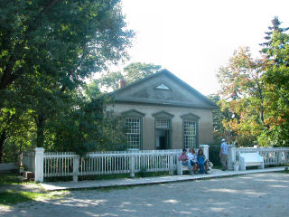 Black Creek Pioneer Village is an open-air museum situated on the Stong family farm, southeast of the intersection of Jane Street and Steeles Avenue in Toronto. It was opened in 1960. It includes of more than 40 19th century buildings. The Stong farm buildings and the Dalzhiel barn are on their original sites but the rest of the buildings have been moved from where they were build to the museum.