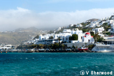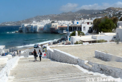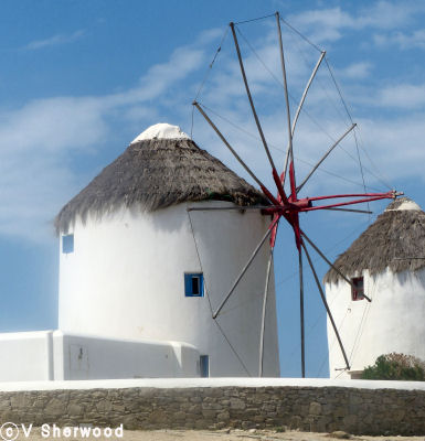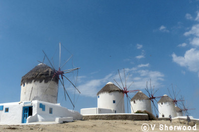 We were on our way to see the windmills but stopped to look back and down on Little Venice. To get the best of the wind off the sea, the windmills are built on a ridge above the town. The only way to get to them is up. | ![]() |