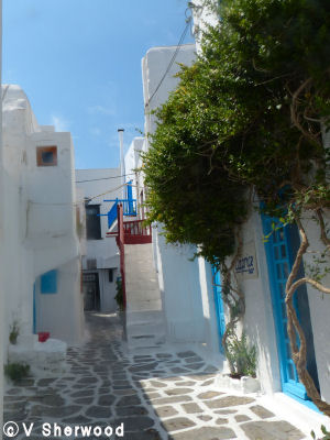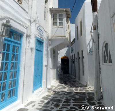 There were no archaeological sites to visit so shopping was the order of the day. We had to buy a present for our neighbour who was babysitting our plants. I was also on the lookout for earrings to match a silver bracelet I had, so off we went. The town was very picturesque too. And we kept a lookout for the famous Petros the pelican which frequents the restaurants of Little Venice.