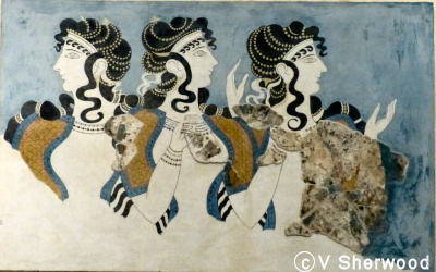 Day 8: May 4, 2015. Today we visit Crete. This morning we were at sea so we had a briefing about coming excursions and a lecture about the glories of Greece. This afternoon we visited Knossos, then the Archaeological Museum in Heraklion.