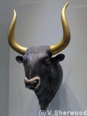 There are many representations of bulls. This is my favourite. I did not get a good photo of the fesco showing youths vaulting over a bull's back but you can see it on my Crete page. |