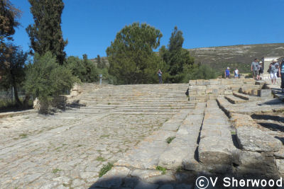The "Royal Road" was the main road from the seaport of Heraklion to Knossos. It entered the north side of the complex at the "Theatre" which might have been an audience platform.. |
